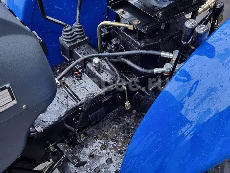 Трактор комплектуется передними утяжелителями, оснащен двумя парами гидровыходов и механическим сцепным устройством.